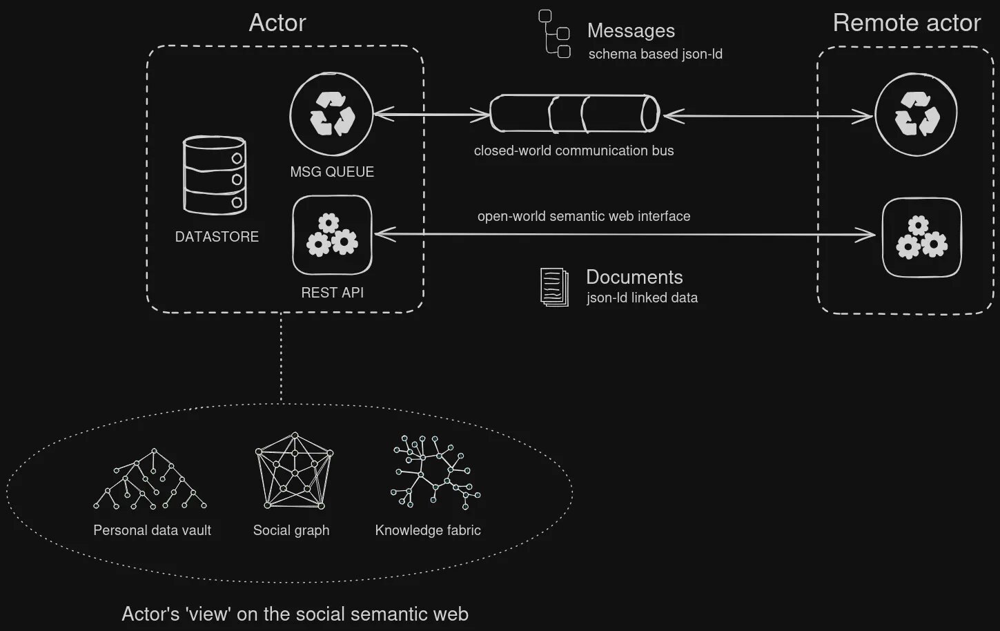 - Protosocial API. Actor-based message bus-like abstraction, closed-world, plain JSON.